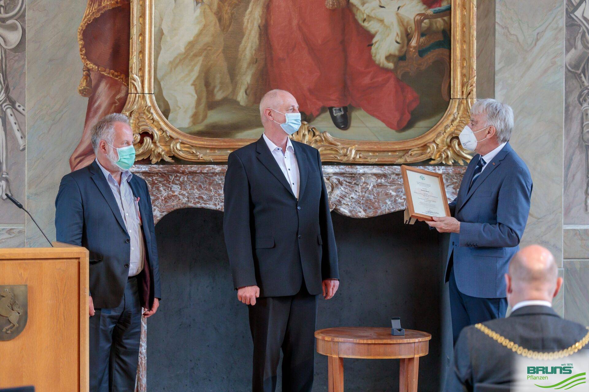 Die Deutsche Gartenbau-Gesellschaft 1822 e.V. (DGG) hat Heiner Bruns, den Leiter des Amts für Grünflächen, Umwelt und Nachhaltigkeit der Stadt Münster bereits 2020 mit dem Goldenen Ginkgo ausgezeichnet. Der höchste Preis für Gartenamtsleiterinnen und Gartenamtsleiter konnte pandemiebedingt erst jetzt übergeben werden. Auf Einladung von Oberbürgermeister Markus Lewe fand am 27. Mai 2021 die feierliche Übergabe statt. Verliehen wird der Goldene Ginkgo von der DGG für herausragende Leistungen und außerordentliches Engagement für öffentliche Grün- und Parkanlagen.