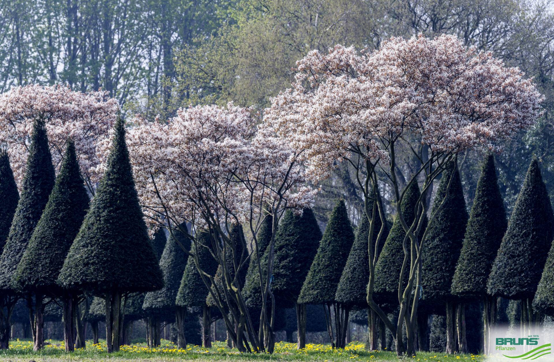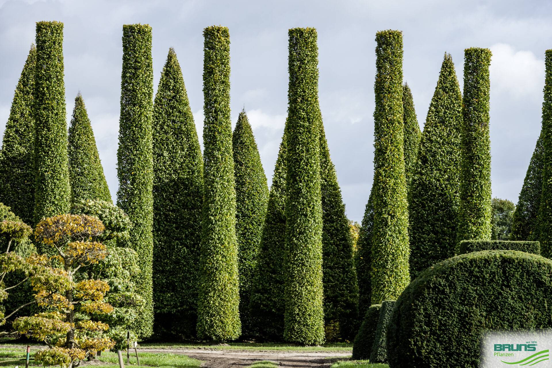 Neben dem breiten Sortiment natürlich gewachsener Laub- und Nadelgehölze bietet Bruns Pflanzen eine reiche Auswahl an aufwändig geformten Gehölzen, die Strukturbildner, kontrastierendes Stilelement oder markanter Blickpunkt sein können. Die breite Palette dieser kostbaren Solitäre umfasst Großbonsais, Gehölze als Kegel, Kugel, Kasten oder in Schirmform gezogen. Andere Bäume beeindrucken mit spalier- oder dachförmigen Kronen, aber auch Spezialwünsche wie Figuren und Firmenlogos können wir erfüllen. Alle Pflanzen werden mit Leidenschaft, hoher Professionalität und Fingerspitzengefühl von unseren Fachkräften geformt. Ihrer Fantasie sind keine Grenzen gesetzt – wir setzen es um.